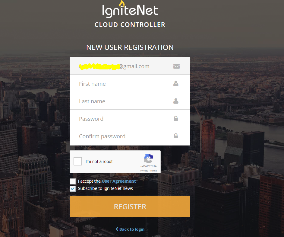 - You should automatically be directed to your account once clicking next, if you are not automatically logged in. Go directly to: https://cloud.ignitenet.com and use your email and password you used to register. You can also add the website as a favorite in your internet browser or on your desktop for easy access.